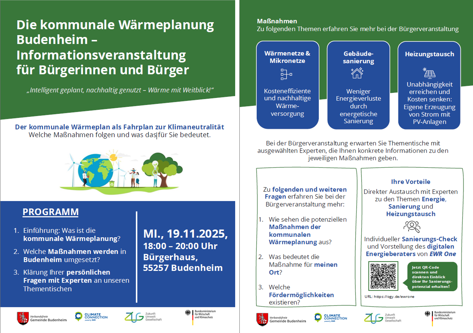 Einladung zur Abschlussveranstaltung für Bürgerinnen, Bürger und Gewerbe zur Kommunalen Wärmeplanung der Gemeinde Budenheim